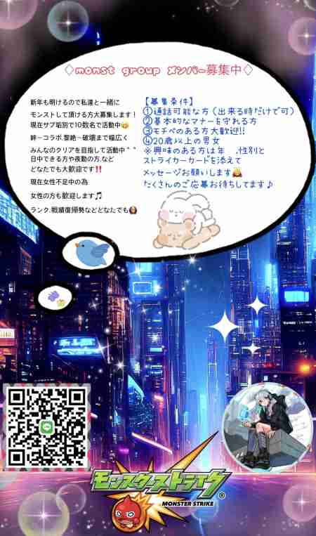 年始に向けてモンストグルメンバー募集します( ◜ᴗ◝)