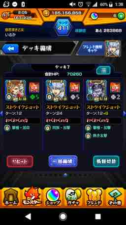 SSはシンデレラが3回ほど1段階で打てましたが、他のキャラは溜まらなかったので、SSは打てない前提で火力枠でゴッストに紋章で回復も担ってもらいました。