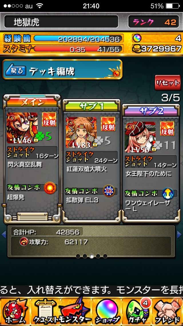 ボスが火属性なので水属性が多めのデッキを組みましたが、道中は水属性のステージと木属性のステージが半々くらいだったので火属性のモンスターを組み込むのも良いかと思います。