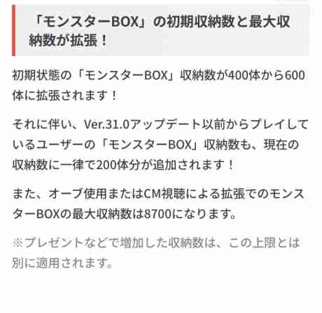 今回のアプデver31.0にてモンスターの最大所持数枠が8200▶︎8700に拡張されましたが幾つか質問があります。