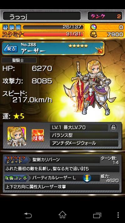 今朝11時ぐらいにアーサーが出てリセマラ終了したものです。 アーサー出るまでには少なくとも100週ぐらいしましたよ 進化後のSSもストライクより強い(平均60万ダメ)ですし、友情スキルは扱いに少し癖がありますが、威力はいまのところ全レーザーの中で最強です。(LVMAX時で17320) 確率は低いですが、頑張れば絶対に出ます! 是非出るまでリセマラ頑張ってください。 あ、マーリンも優秀なのでどっちでもいいと思いますよ^^